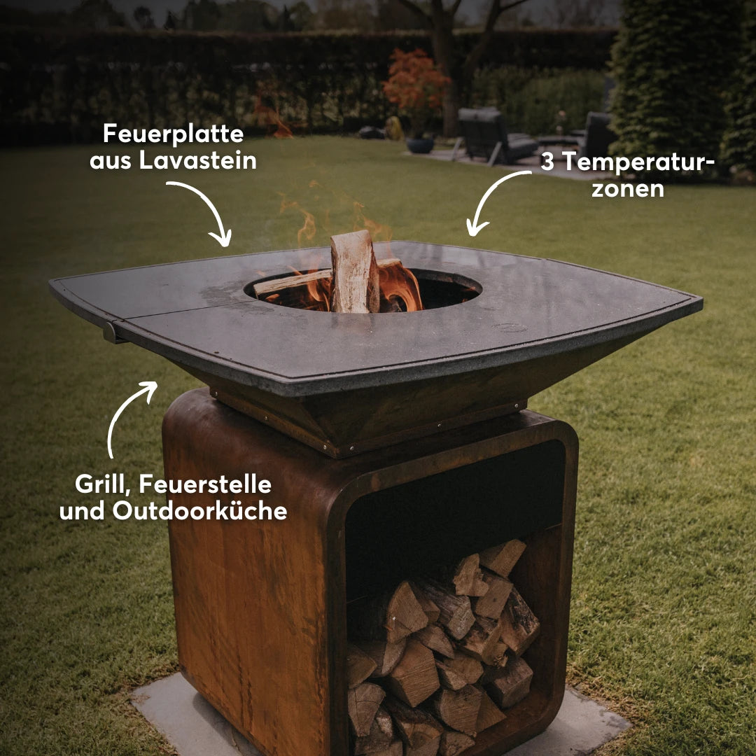 MOESTA ONE FIREPLACE - Corten mit Lavastein Grillplatte